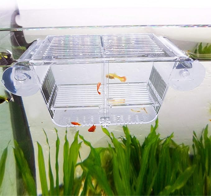 capetsma Fish Breeding Box, Acrylic Fish Isolation Box with Suction Cups, Aquarium Acclimation Hatchery Incubator for Baby Fishes Shrimp Clownfish and Guppy... Small Size (S)