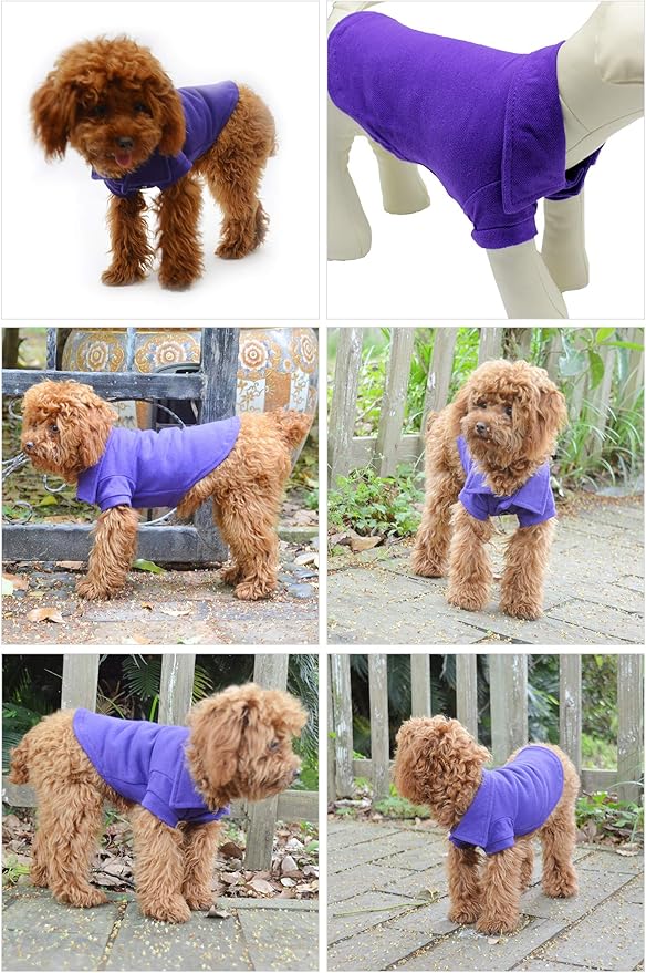 lovelonglong Basic Dog Polo Shirts Premium Cotton, Polo T-Shirts for Large Medium Small Dogs with a Two-Button Collar Blank Color Purple S
