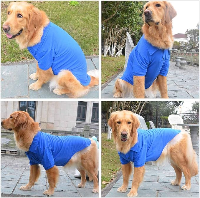 lovelonglong Basic Dog Polo Shirts Premium Cotton, Polo T-Shirts for Large Medium Small Dogs with a Two-Button Collar Blank Color Blue XXXL