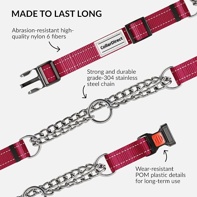 CollarDirect Martingale Dog Collar with Stainless Steel Chain and Quick Release Buckle - Reflective Collar for Large, Medium, Small Dogs - Dark Red, Small (Neck Size 12"-15")