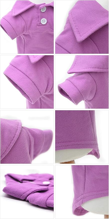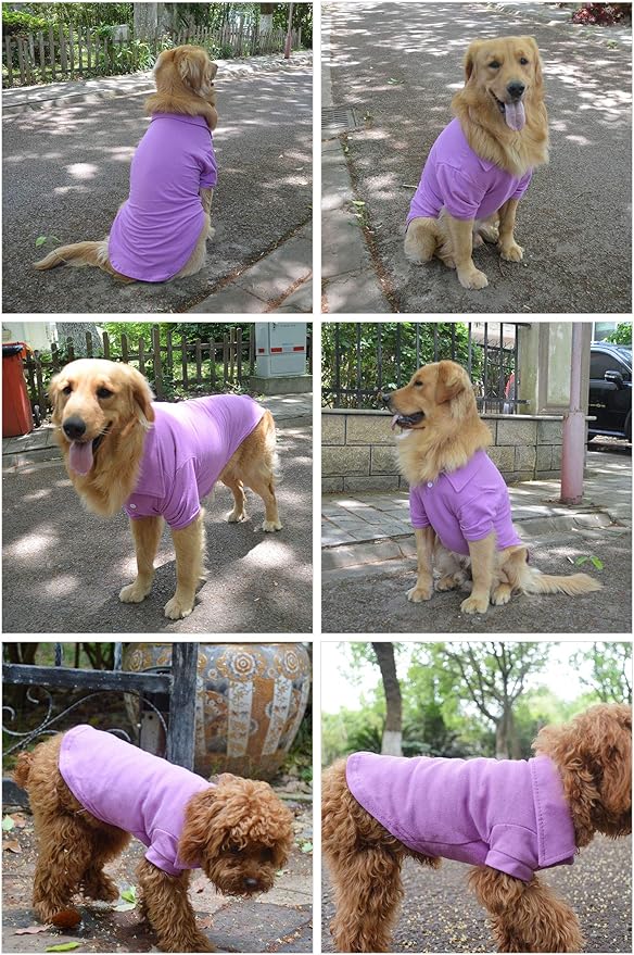 lovelonglong Basic Dog Polo Shirts Premium Cotton, Polo T-Shirts for Large Medium Small Dogs with a Two-Button Collar Blank Color Violet M