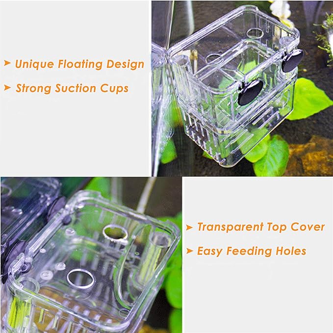 Acrylic Floating Fish Hatchery Isolation Box, Double Layer Fry Hatching Incubator Breeding Rearing Trap, Aquarium Tank Fish Parenting Container Divider with Suction Cups