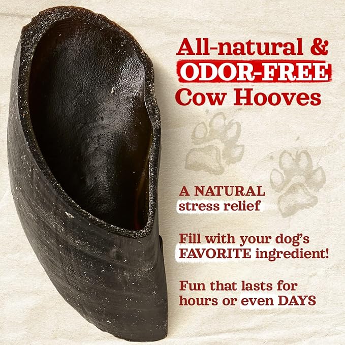 Natural Farm Cow Hooves (6 Pack), Odor-Free, All Natural Sourced from Farm-Raised Beef Hoof Dog Treats, Great Alternative to Bully Sticks or Rawhide, Dental Chew for Small, Medium, Large Breeds
