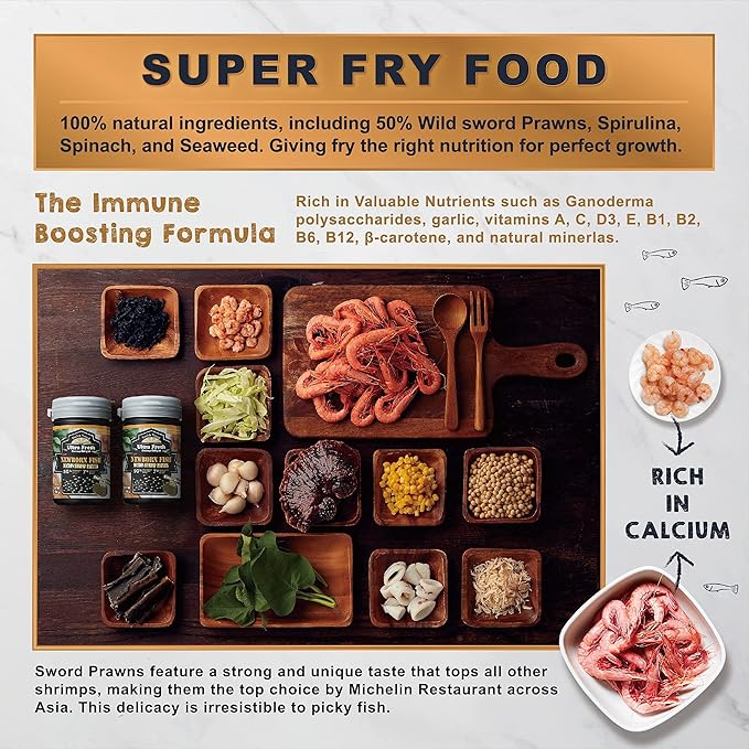 Ultra Fresh Baby Fish Food with 50% Sword Prawn Shrimp, Slow Sinking, Substitute for Brine Shrimp - For Fry Health and Cleaner Water