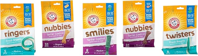 Arm & Hammer for Pets Nubbies Dental Treats for Dogs with Baking Soda and Calcium, Treat Chews Help Fight Bad Breath, Plaque & Tartar without Brushing, Peanut Butter, 20 Pcs, 4pk (Packaging may vary)