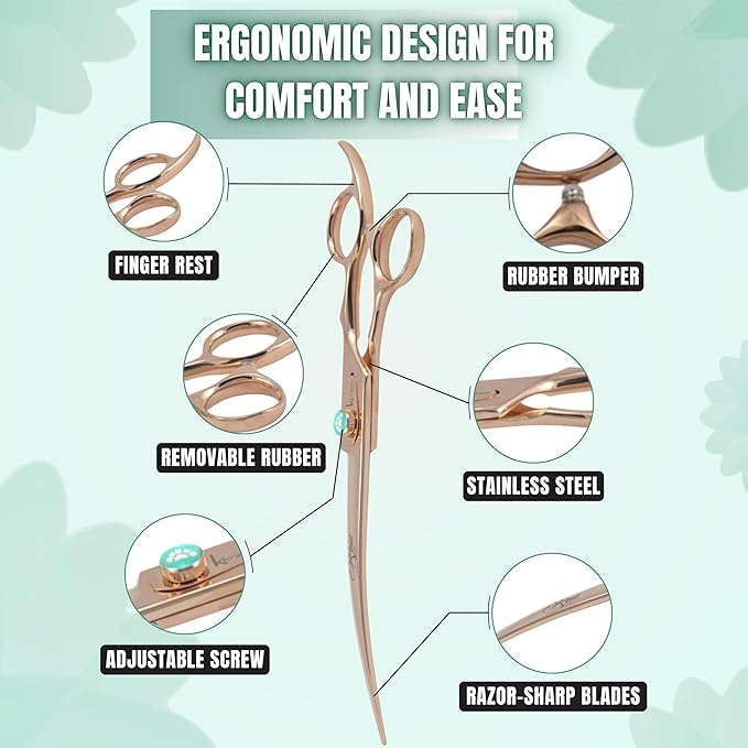 - Elegant Curved Design for Precision Grooming: Achieve smooth, natural contours when trimming around the face, legs, and paws. The gentle curve enhances control and accuracy for professional grooming results.