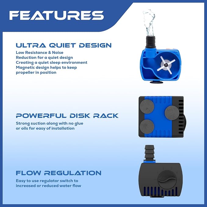 66 GPH Submersible Water Pump - Adjustable Quite Aquariums, Fountains, Hydroponics, and Pond Pump, 1.9 ft Lift, 2.5W - 5 Pack