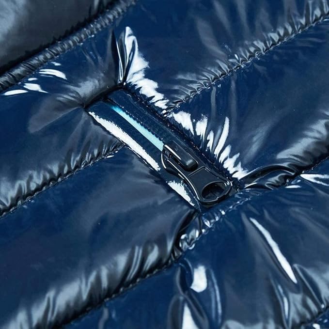 Blueberry Pet Cozy & Comfy Windproof Lightweight Quilted Fall Winter Glossy Dog Puffer Jacket in Navy Blue, Back Length 15.75", Size 14, Warm Coat for Medium Dogs