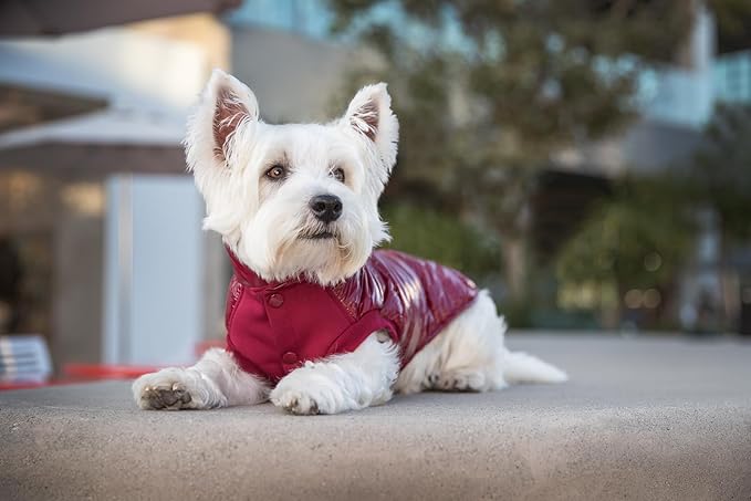 Blueberry Pet Cozy & Comfy Windproof Lightweight Quilted Fall Winter Glossy Dog Puffer Jacket in Deep Rouge, Back Length 22.5", Size 20, Warm Coat for Large Dogs
