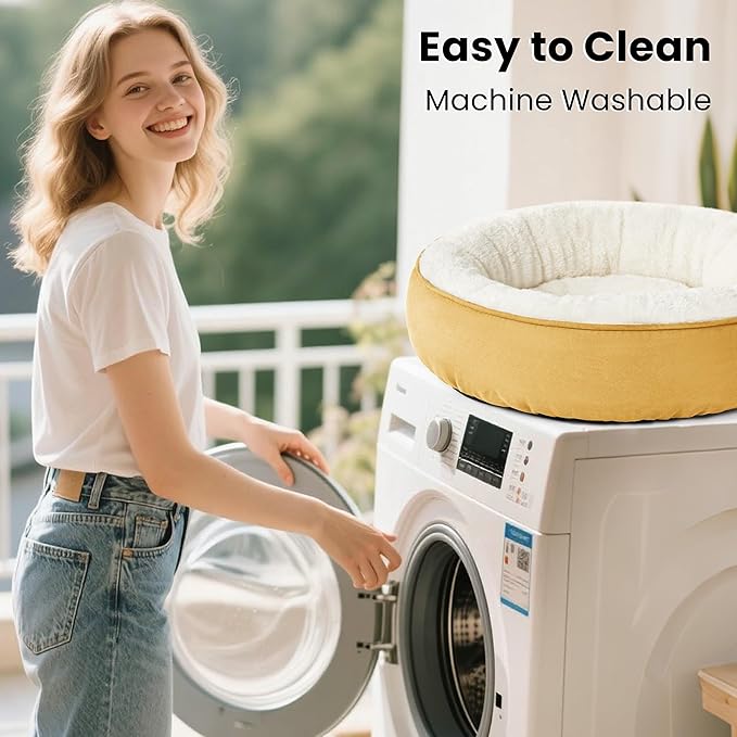 Love's cabin Yellow Round Donut Cat Bed, 20x20in, Soft Durable Fabric, Anti-Slip Water-Resistant, Washable Pet Bed