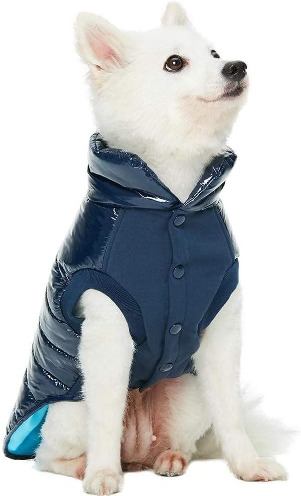 Blueberry Pet Cozy & Comfy Windproof Lightweight Quilted Fall Winter Glossy Dog Puffer Jacket in Navy Blue, Back Length 17", Size 16, Warm Coat for Large Dogs