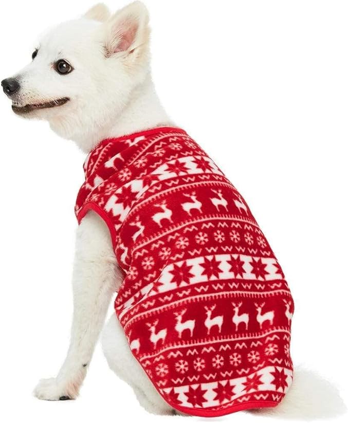 Blueberry Pet Dog Fleece Vest - Soft & Lightweight Ugly Christmas Sweater for Small Dogs, Award Winning Brand, 18" Back, Dog Christmas Sweater, Reindeer & Snowflake