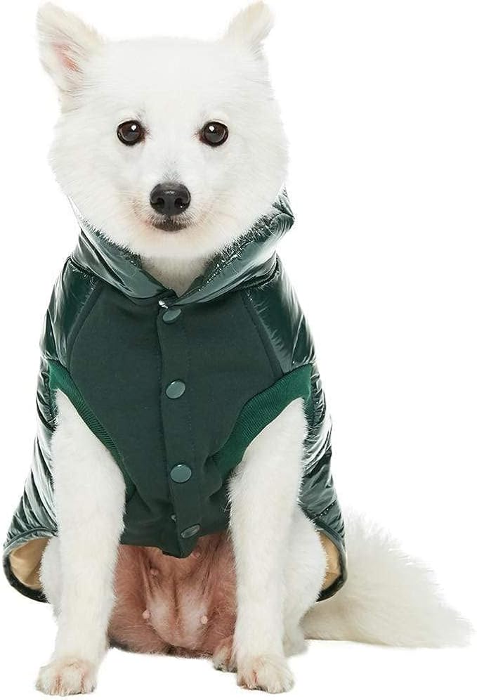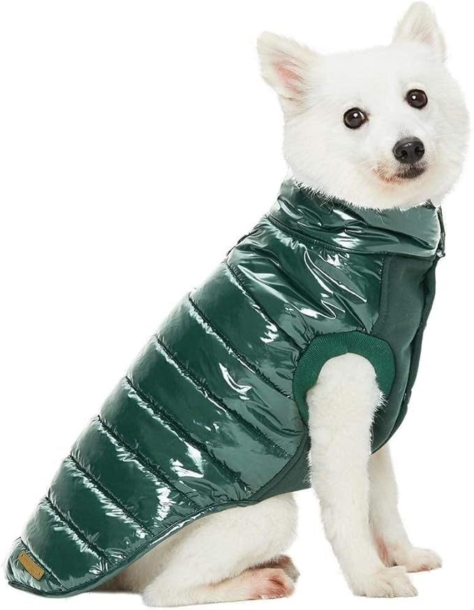 Blueberry Pet Cozy & Comfy Windproof Lightweight Quilted Fall Winter Glossy Dog Puffer Jacket in Hunter Green, Back Length 12.5", Size 10, Warm Coat for Small Dogs