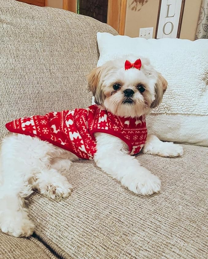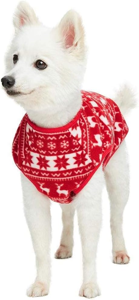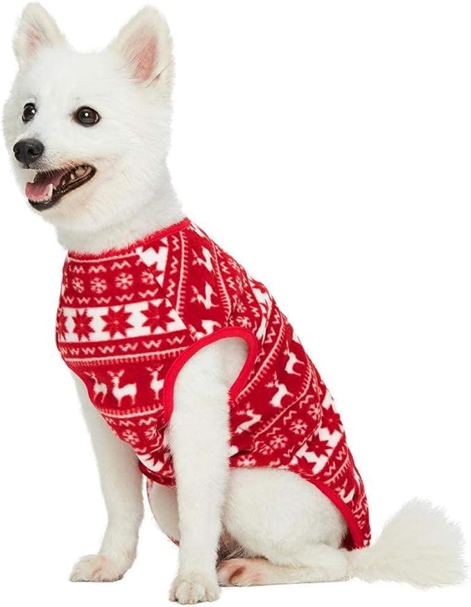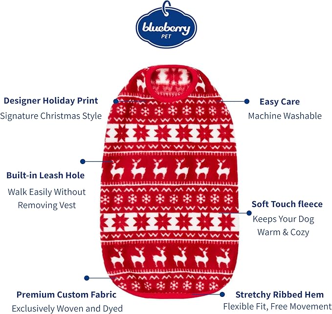 Blueberry Pet Dog Fleece Vest - Soft & Lightweight Ugly Christmas Sweater for Small Dogs, Award Winning Brand, 14" Back, Dog Christmas Sweater, Reindeer & Snowflake