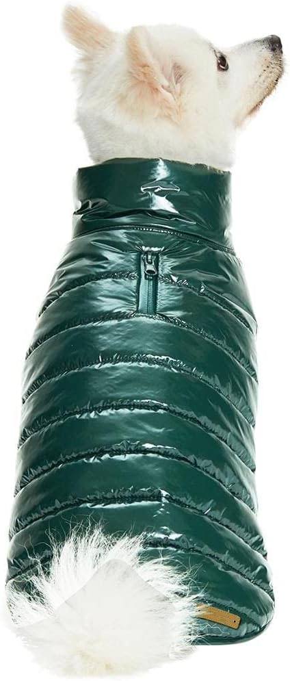 Blueberry Pet Cozy & Comfy Windproof Lightweight Quilted Fall Winter Glossy Dog Puffer Jacket in Hunter Green, Back Length 15.75", Size 14, Warm Coat for Medium Dogs