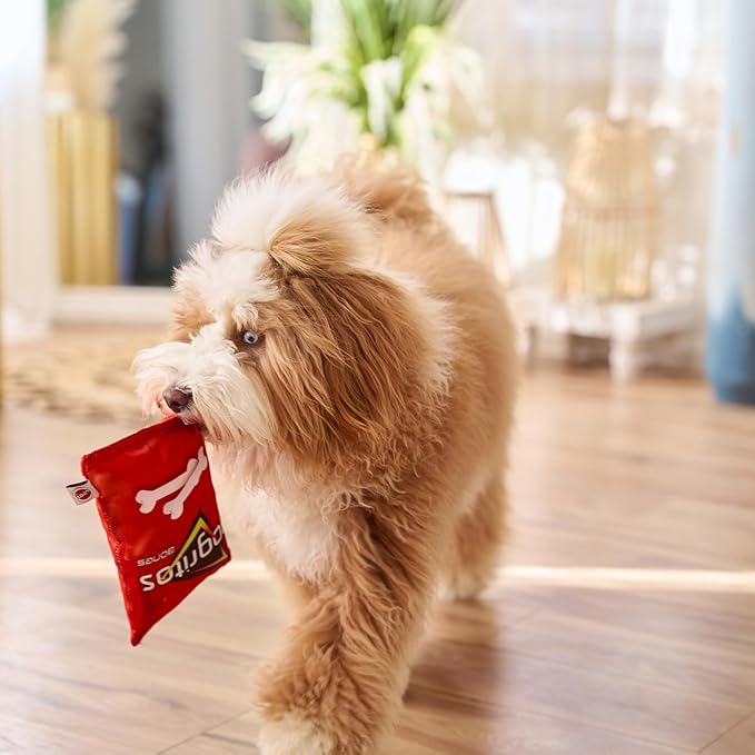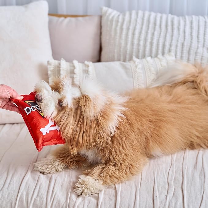 About This Squeaky, crinkly fun: Keep your dog entertained for hours with this plush snack-inspired toy that squeaks and crinkles... Read more