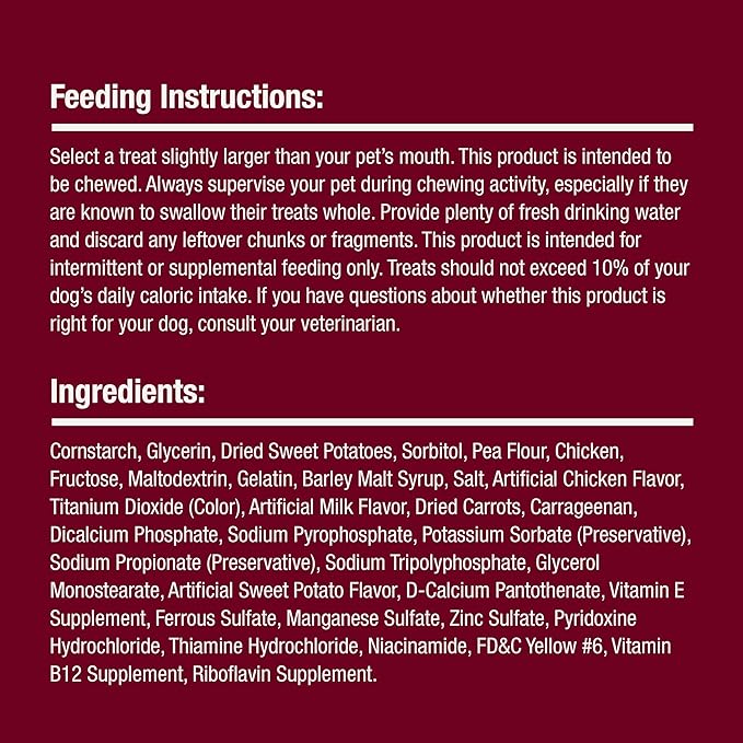 About This RAWHIDE-FREE CHEWS: Easy-to-digest dog chews made with wholesome ingredients. MADE WITH REAL SWEET POTATO: Made with a vegetable... Read more