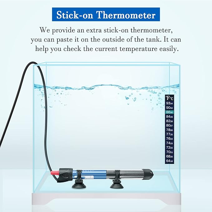 Hitop 25W/50W/100W/300W Adjustable Aquarium Heater, Submersible Glass Water Heater for 5 – 70 Gallon Fish Tank (50W)