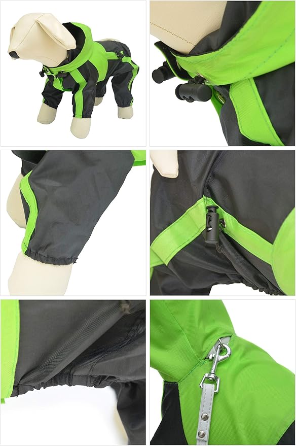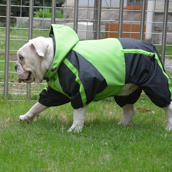 Lovelonglong American Bully Pitbull Dog Hooded Raincoat, Bulldog Rain Jacket Poncho Waterproof Clothes with Hood Breathable 4 Feet Four Legs Rain Coats for Pugs English French Bulldog Green B-L