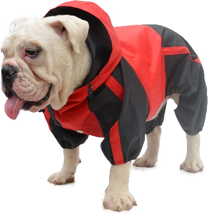 Lovelonglong American Bully Pitbull Dog Hooded Raincoat, Bulldog Rain Jacket Poncho Waterproof Clothes with Hood Breathable 4 Feet Four Legs Rain Coats for Pugs English French Bulldog Red B-L