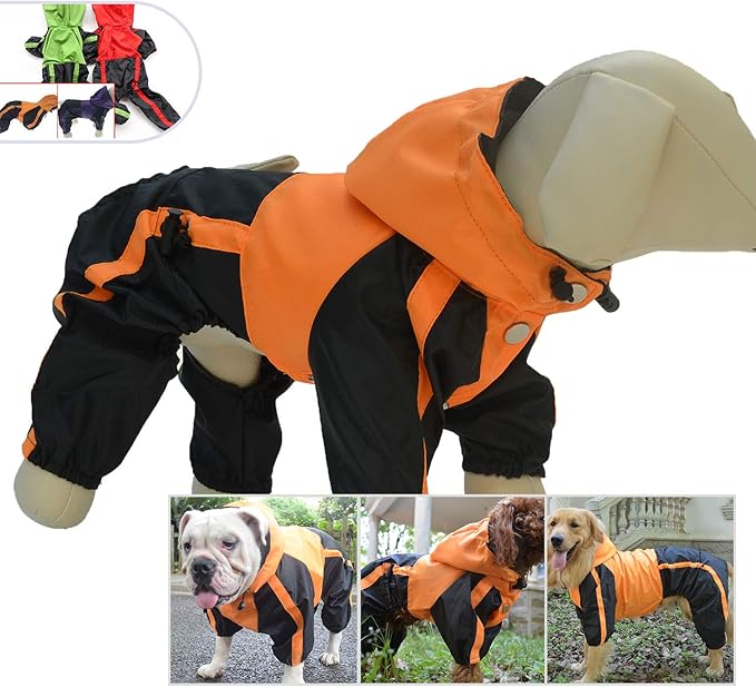 Lovelonglong American Bully Pitbull Dog Hooded Raincoat, Bulldog Rain Jacket Poncho Waterproof Clothes with Hood Breathable 4 Feet Four Legs Rain Coats for Pugs English French Bulldog Orange B-M
