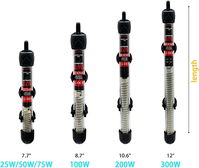 Fish Tank Aquarium Heater - Adjustable Temperature Submersible Thermostat Heater,25W/50W/100W/150W/200W/300W