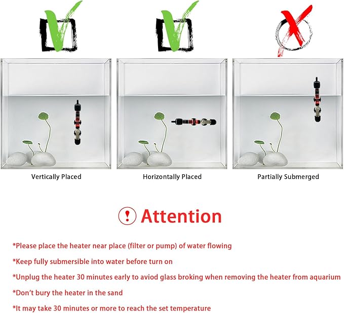 About This [ADJUSTABLE TEMPERATURE]Temperature range: 68°F~90°F.25W heater is suitable for fish tank under 8 gallons,Length:7.7".Easy to adjust temperature by the... Read more