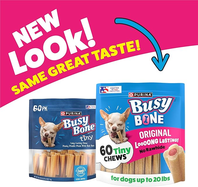 Purina Busy Bone Adult Toy Breed Dog Chew Bone Treats, Tiny - 60 ct. Pouch