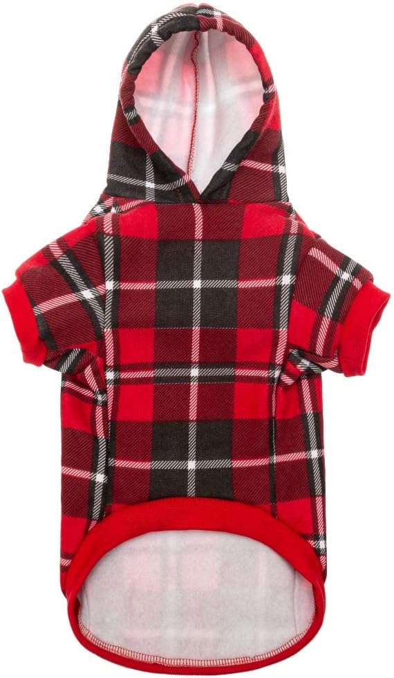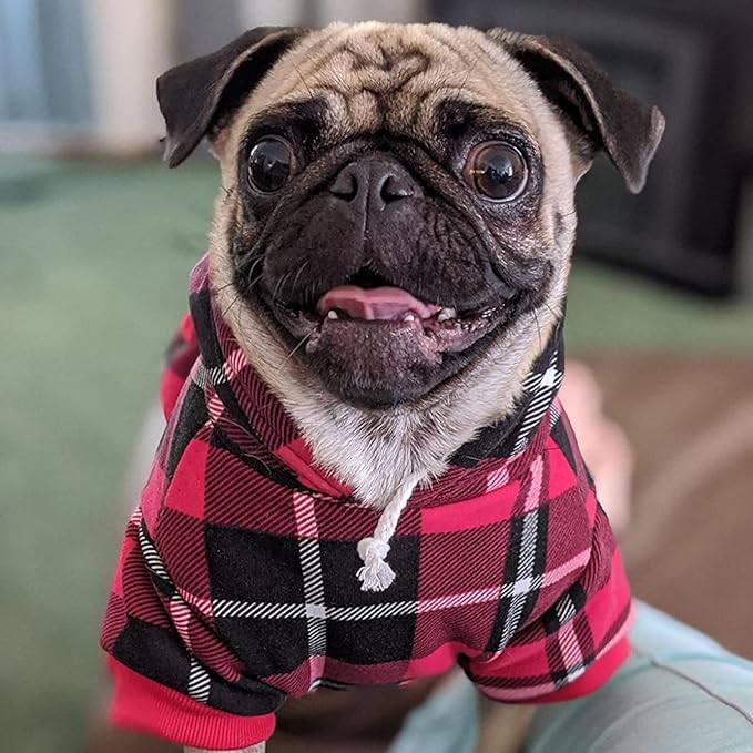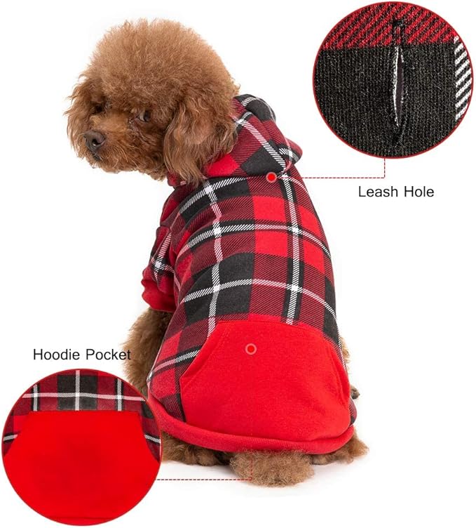 BINGPET Dog Plaid Hoodie - Pocket Design - Dog Fleece Sweater with Hat Pet Winter Clothes Plaid Sweatershirts for Winter