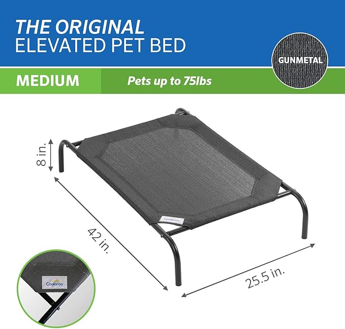 Coolaroo Original Elevated Dog Bed - Breathable Off-The-Ground Pet Bed with Cooling Fabric, Joint Relief & Moisture-Resistant Fabric, 100% Recyclable, Easy Clean, Gunmetal, Medium