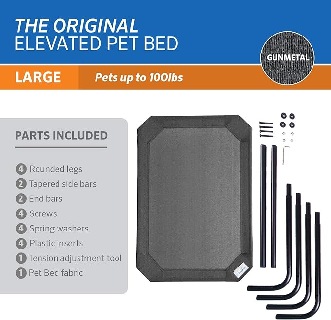 Coolaroo Original Elevated Dog Bed - Breathable Off-The-Ground Pet Bed with Cooling Fabric, Joint Relief & Moisture-Resistant Fabric, 100% Recyclable, Easy Clean, Gunmetal, Large
