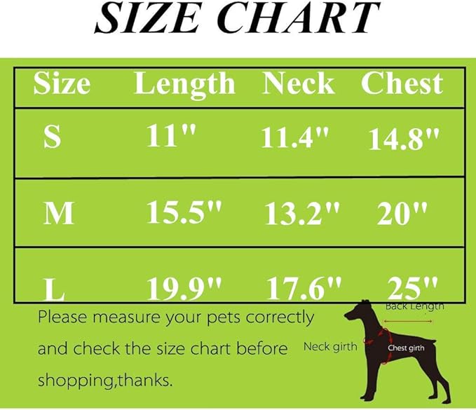• M:neck girth is 13.2 inch, chest girth is 20 inch, body length is 15.5 inch,suitable for Beagle,Boston Terrier and so on