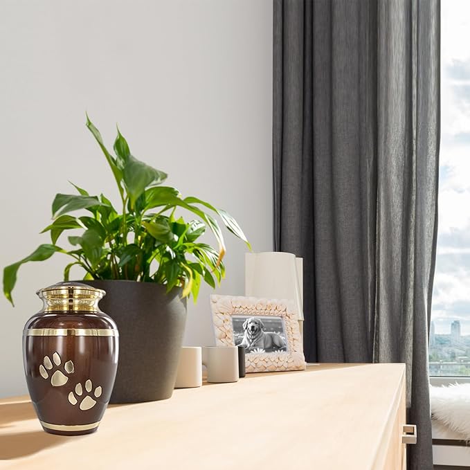 Trupoint Memorials Small Pet Urn for Dogs and Cats Ashes, Paws Print Brown Cremation Urns for Pets up to 17 lbs