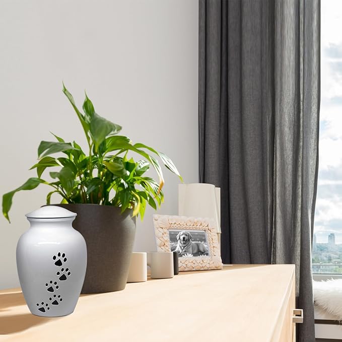 - Lasting Durability - Crafted with precision and care, this pet urn is built to withstand the test of time, preserving the memories of your cherished pet for generations to come. This small pet urn holds up to 17 lbs, measuring 4" tall and 3.1" wide.