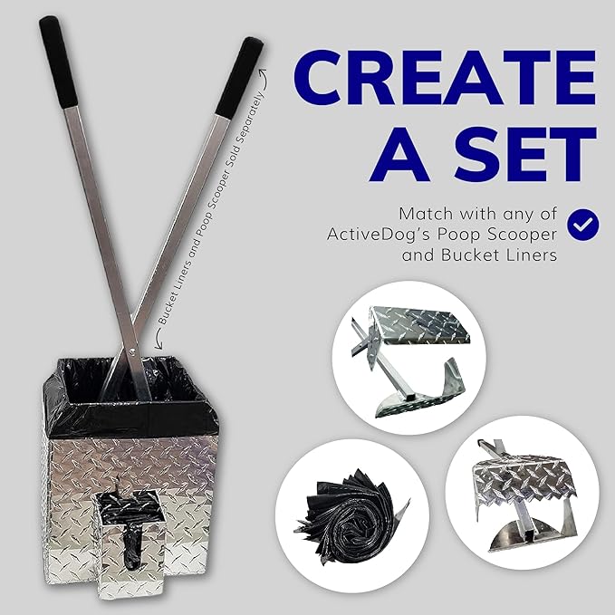 ActiveDogs Dog Poop Bucket Pet Waste Container - Heavy Duty Dog Poop Trash Can Outside Disposal Pail - A Rust-Resistant, Aluminium Metal, 5 Gallon Pail - Made in USA