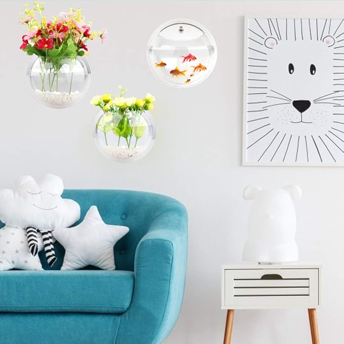 About This Size: Diameter: 15cm/5.91" (Approx.);Including: 1 x Wall Mounted Fish Tank 1 x Non-trace Nail 1 x Steel Nail... Read more