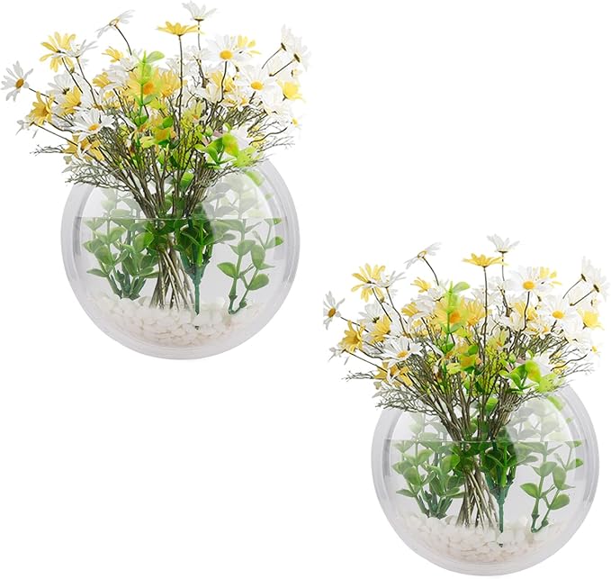 GREENWISH 2Pack 5.9'' Wall Mounted Clear Acrylic Round Fish Tank Flower Pot Vase Decoration Wall Hanging Mount Fish Bowl Fish Bubble Aquarium Decorative Plant Pot Hanging Hydroponic Pot