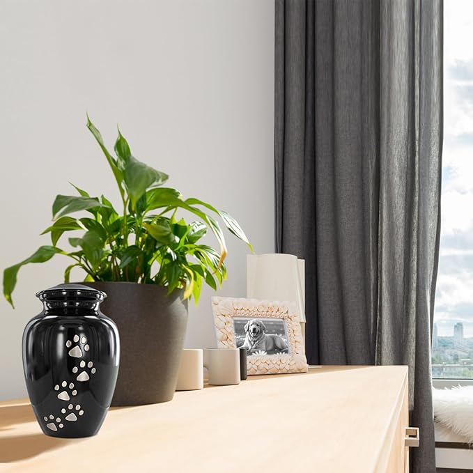 Trupoint Memorials Small Pet Urn for Dogs and Cats Ashes, Paws Print Black Cremation Urns for Pets up to 17 lbs