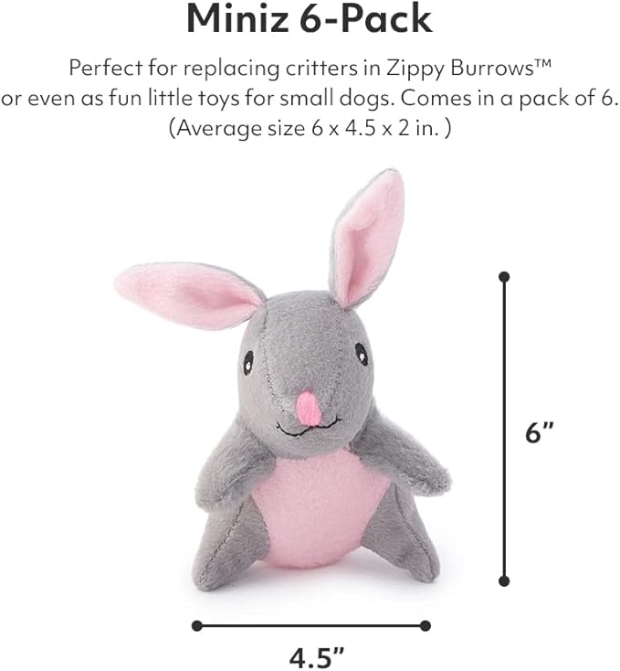ZippyPaws Burrow Replacement Miniz - Interactive Dog & Puppy Toys for Boredom, Stimulating Pet Products to Keep Them Busy, Plush Refills for Hide & Seek Puzzle, Enrichment Squeaky Toys - Mixed 6 Pack