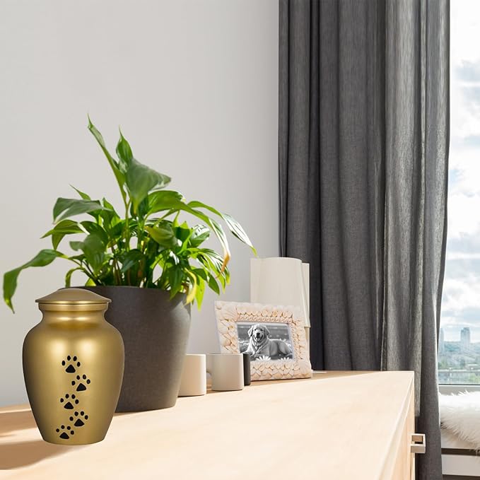 Trupoint Memorials Small Pet Urn for Dogs and Cats Ashes, Paws Print Gold Cremation Urns for Pets up to 17 lbs