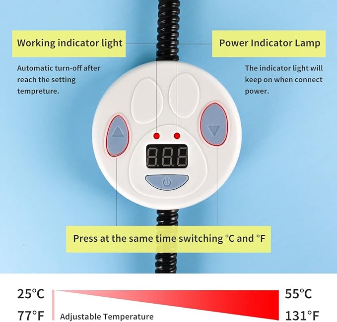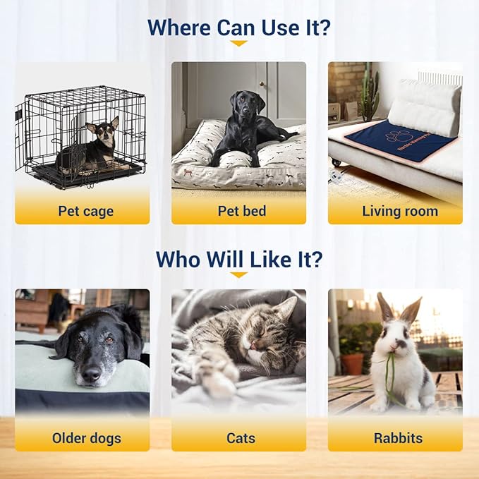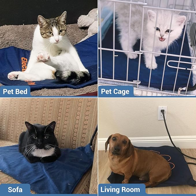 NAMSAN Heated Cat Bed, 7-Level Adjustable Temperature Rabbit Warming Mat, Outdoor/Indoor Dog Cage Heating Pad with Chew Resistant Cord, Blue
