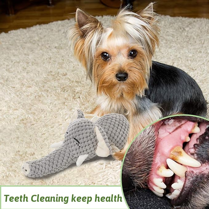 Plush Dog Toy, Squeaky Interactive Puppy Dog Toys with Crinkle Paper, Durable Chew Toys for Small and Medium Dogs with Mouse Shape(Medium, Elephant)