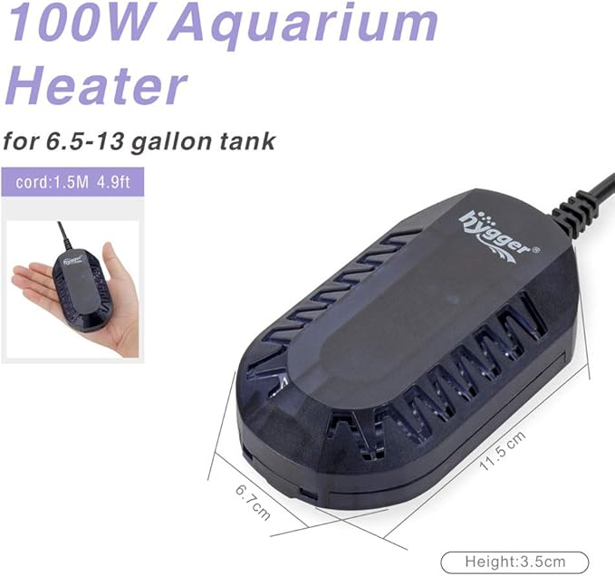 hygger Mini Glass Aquarium Heater Adjustable Temperature LED Digital Display Small Fish Tank Heater for 6.5-13 Gallon Turtle Betta Tank with Protective Guard 100W