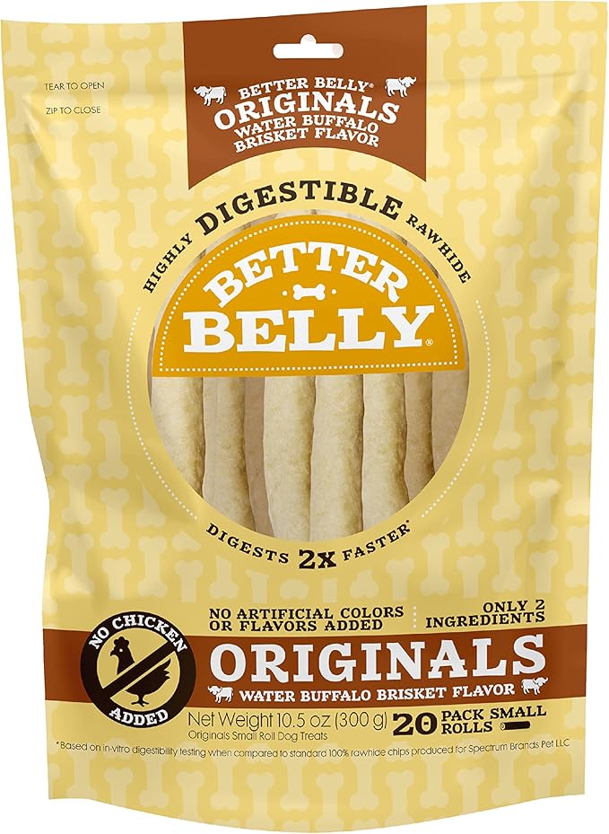 Better Belly Highly Digestible Rawhide Small Roll Chews, Treat Your Dog to a Chew with NO Artificial Colors or Flavors