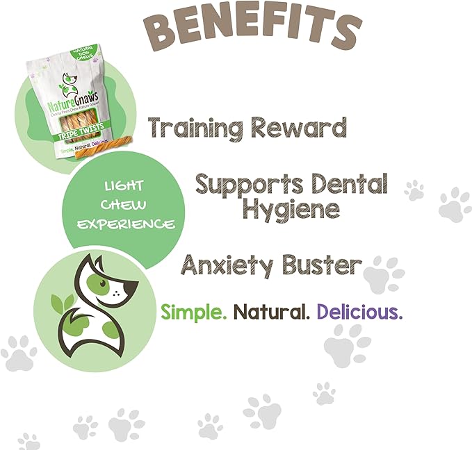 Nature Gnaws Tripe Twists for Dogs 4-5" (20 Count) - Crunchy Grain Free Reward Snack for Small, Medium & Large Breeds - Natural Beef Dog Chew Treats - Rawhide Free