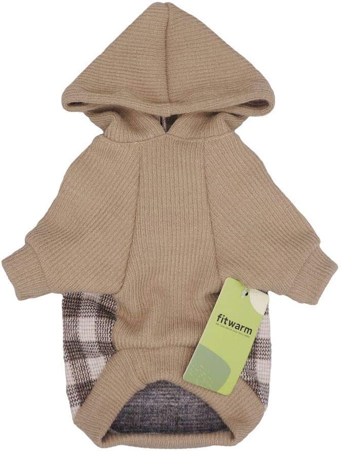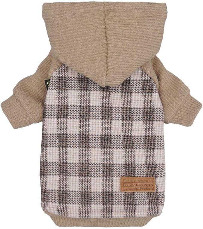Fitwarm Tartan Plaid Dog Hoodie, Knitted Dog Clothes for Small Dogs Boy, Pet Sweatshirt, Knitted Sweater, Beige, XXL