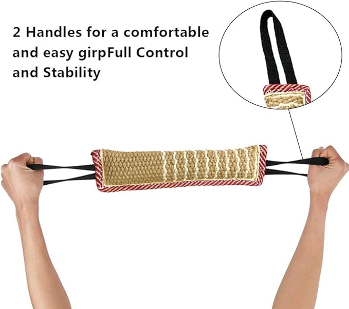 Dog Tug Toy, Dog Bite Jute Pillow Pull Toy with 2 Strong Handles, Perfect for Tug of War, Puppy Training Interactive Play, Bite Training Toys for Medium to Large Dogs (Pink Yellow)
