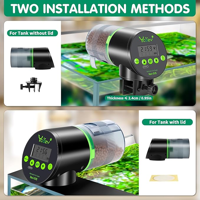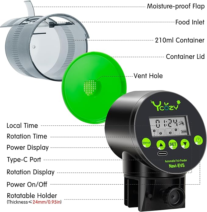 Ycozy Automatic Fish Feeder Rechargeable with Type-C Cable Fish Feeder Automatic Dispenser for Vacation Small Tank/Betta/Turtle Upgraded Moisture-Proof Container