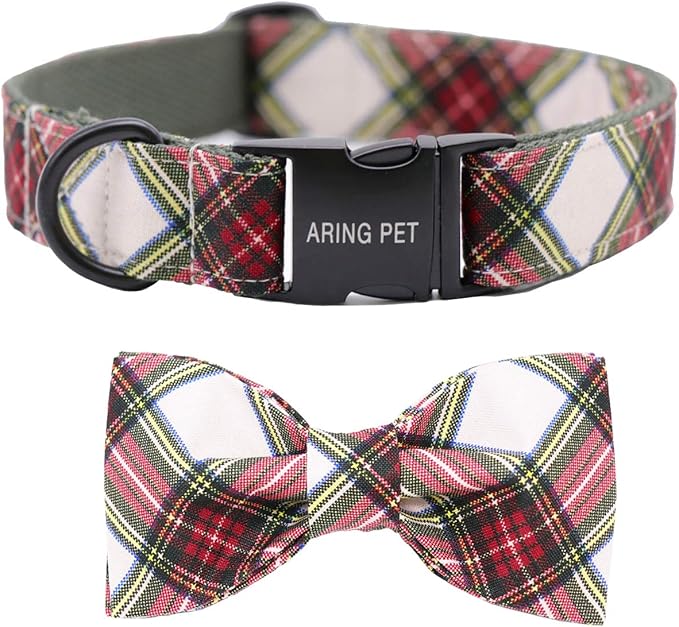 ARING PET Christmas Dog Collar Bowtie, Cute Red Green Xmas Holiday Pet Collars with Bow for Puppy Small Medium Large Boy Girl Dogs-L