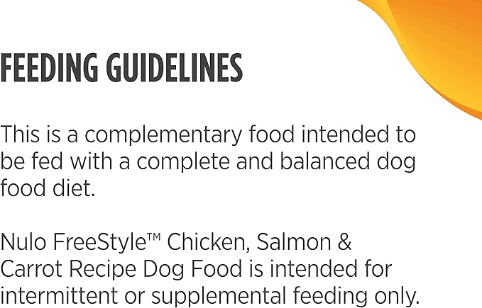 - CHICKEN, SALMON & CARROT RECIPE - Nulo Freestyle Puppy & Dog Wet Food Toppers have no grains, artificial flavors, or preservatives. These real meat dog toppers feature natural animal-based protein and only 3 wholesome ingredients in each pouch. Pack of 24, 2.8 Oz each.